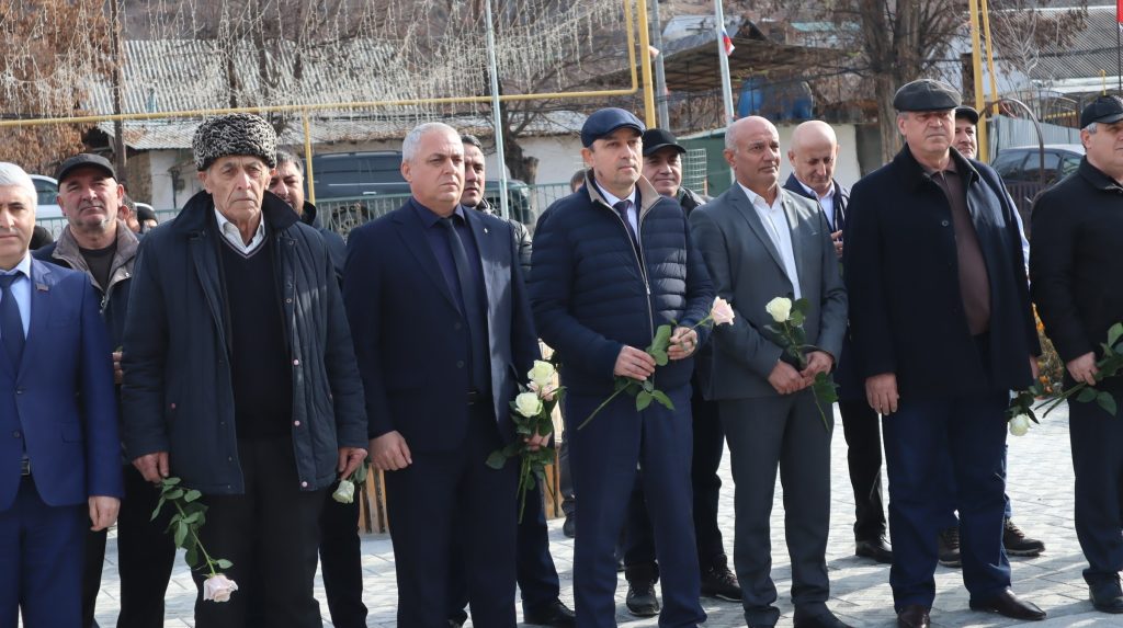 Бах1арзал рак1алде щвезе ва гьезул х1урмат гьабиялъул мурадалда тадбиралда г1ахьаллъи гьабулез т1угьдул лъуна памятникалда цере ва г1уц1араб къаг1идаялда гьабуна цо минуталъулаб сих1къот1и.
