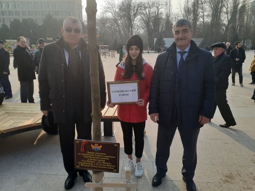 Средства для реконструкции центральной площади Махачкалы подарили москвичи. На площади высажены канадские клены, которые образут аллею под символическим названием «Сад памяти-сад жизни». В рамках торжеств открытия площади глава Гергебильского района, в числе глав других муниципалитетов, разместил на одном из дереве табличку с названием Гергебильского района.