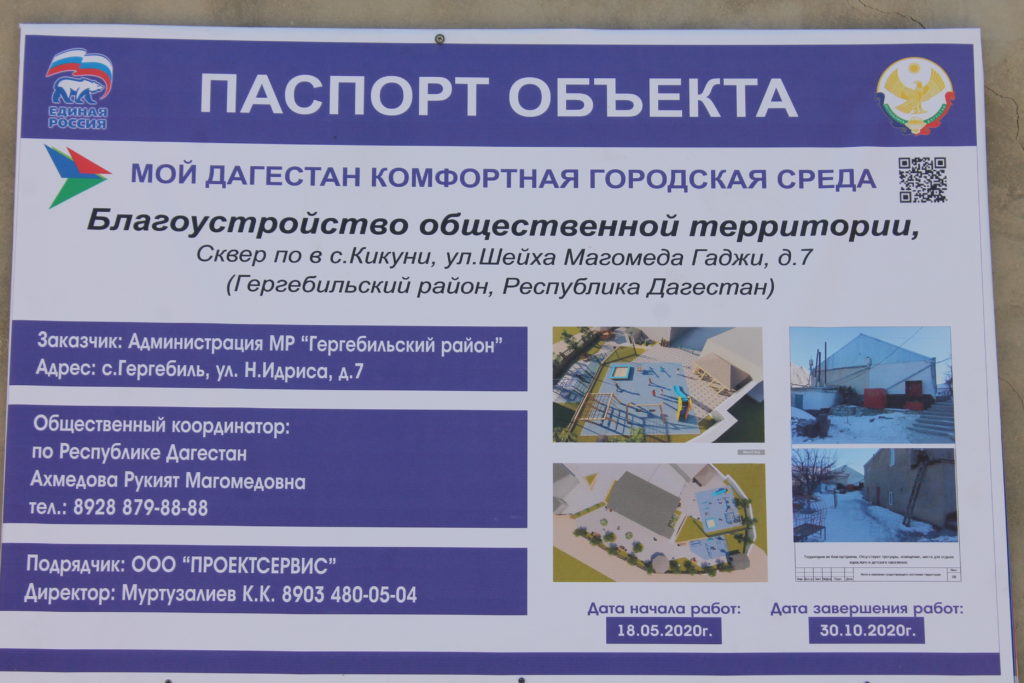 Скверы строятся в селах Кикуни и Мурада в рамках проекта «Мой Дагестан- комфортная городская среда», инициированного Главой республики Владимиром Васильевым. Строительные работы ведутся фирмой «Проектсервис».