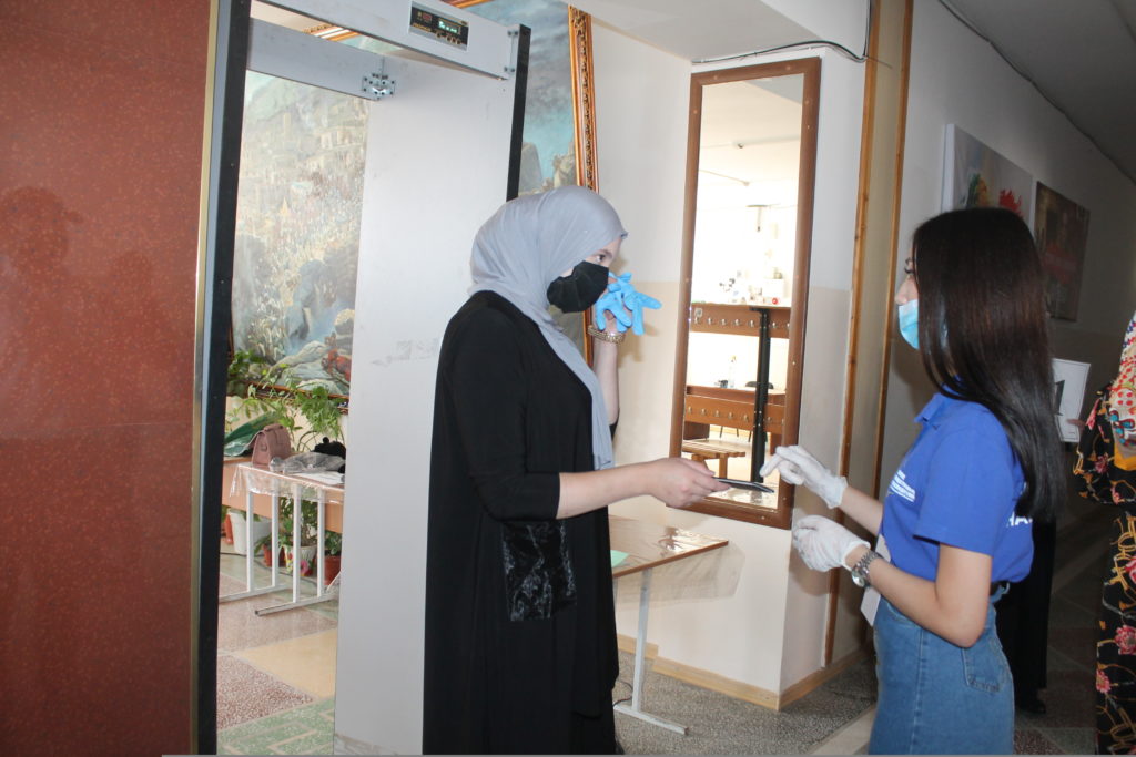 На пункте Гергебильского района соблюдены все меры, рекомендуемые Роспотребнадзором. Измерение температуры, дистанционирование, ношение масок и перчаток – стали необходимостью при сдаче ЕГЭ в этом году.