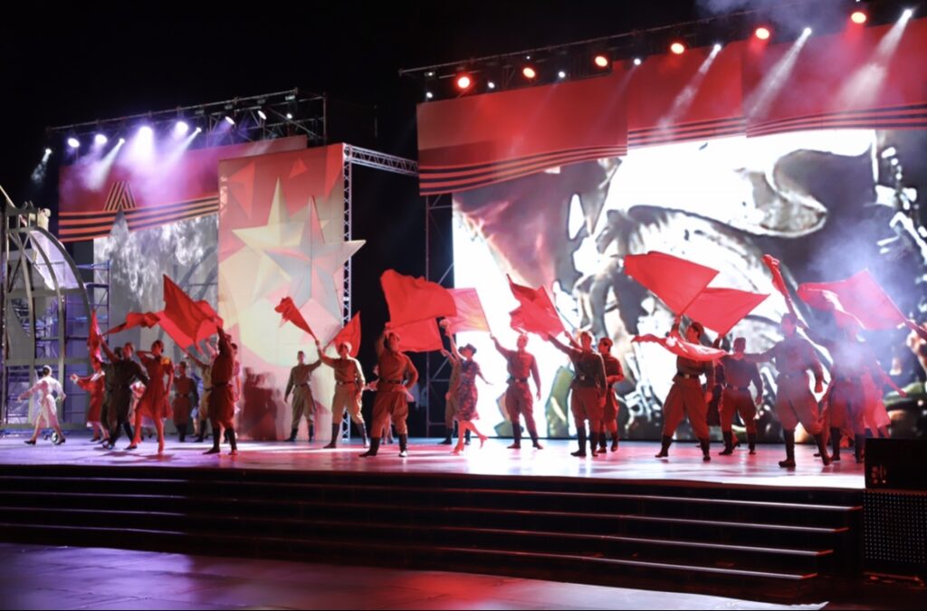 Лучшие хореографические коллективы Дагестана выступили с театрализованной пластической композицией на военную тематику. Прозвучали самые популярные песни военных лет. Концерт организован Министерством культуры РД.