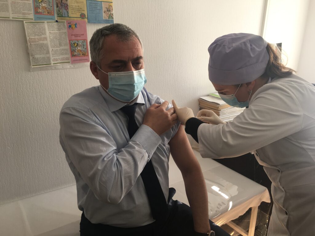 Отметим, до прививки руководство района сдали анализ на антитела, прошли обследование у терапевта и заполнили необходимые документы. После прививки необходимо соблюдать меры безопасности: воздержаться от посещения общественных мест, соблюдать масочный режим и социальную дистанцию, минимизировать контакты, занятие спортом, не принимать алкоголь, не посещать баню, сауну.