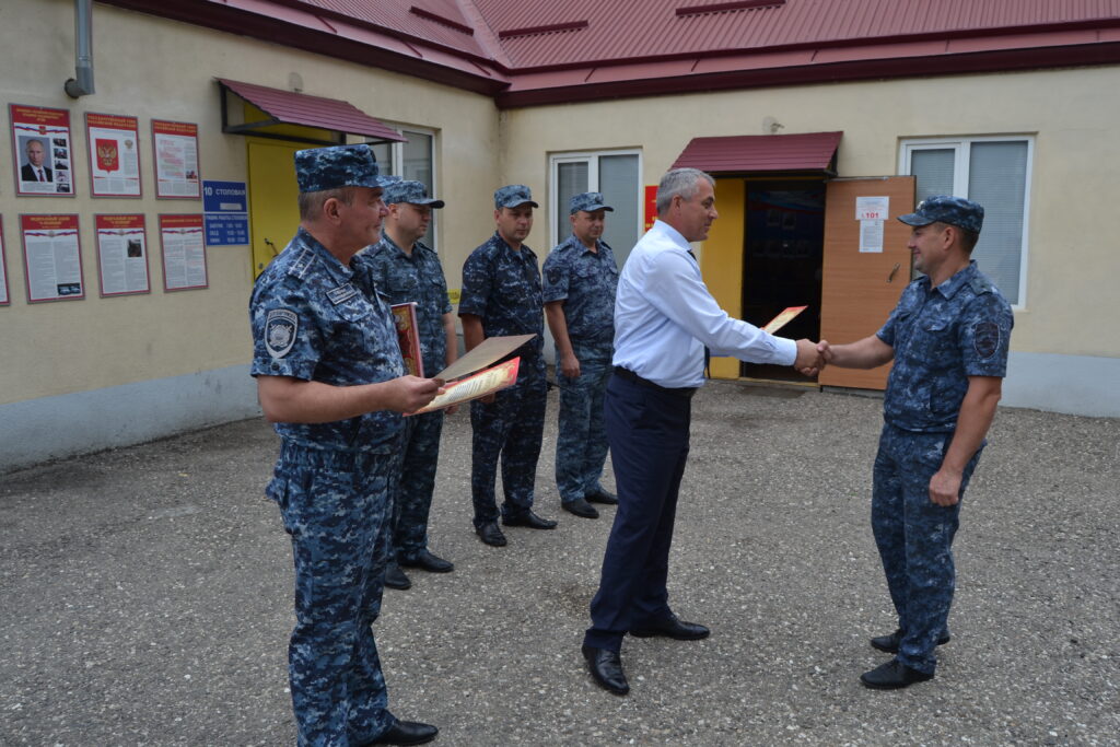 В рамках встречи Магомедали Тагиров встретился с начальником КПП полковником полиции Робертом Башировым и с личным составом. Глава муниципалитета поблагодарил полицейских за службу и наградил почетными грамотами отличившихся сотрудников.